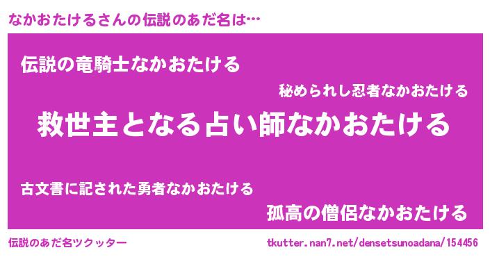 | 意味不明あだ名 | 『自称なかおたける』 |