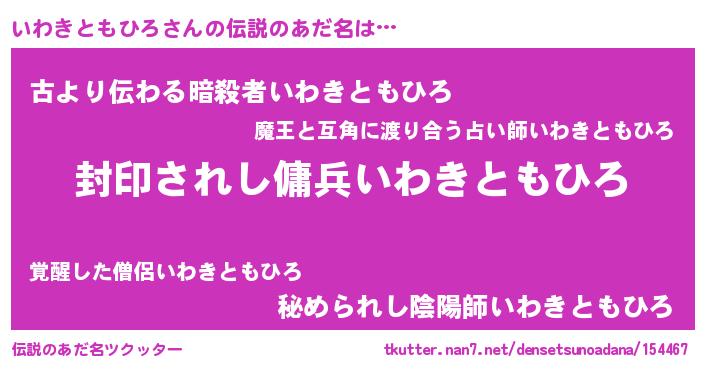 | 男性向けラノベタイトル風あだ名 | 『この素晴らしい世界にいわきともひろを!』 |