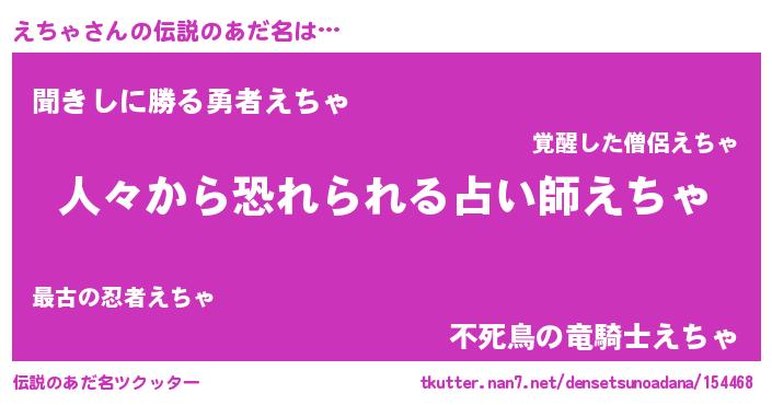 | 女子向けラノベタイトル風あだ名 | 『シンデレラえちゃ家の靴箱館』 |
