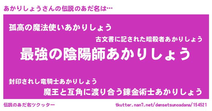 | ファンタジー風あだ名 | 『エターナルアカリショウー』 |