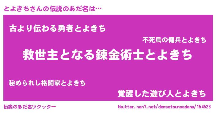 | ヒーロー風カッコイイあだ名 | 『天空の使者とよきち』『ネオトヨキチ』 |