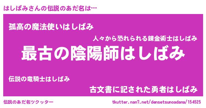 | 意味不明あだ名 | 『はしばみフォーエバー』『自称はしばみ』 |