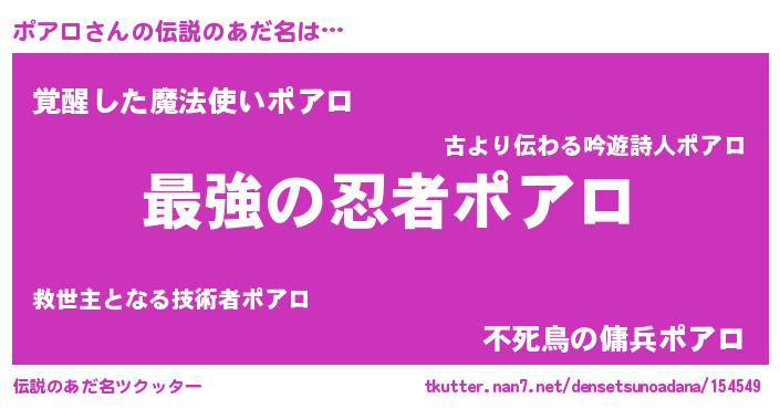 | ヒーロー風カッコイイあだ名 | 『ウルトラポアロマン』『炎刃騎士ポア』 |