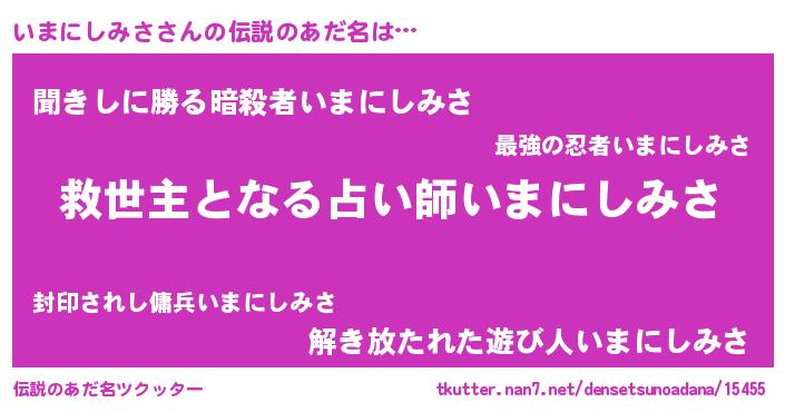 | ヒーロー風カッコイイあだ名 | 『慈愛の使者いまにしみさ』 |