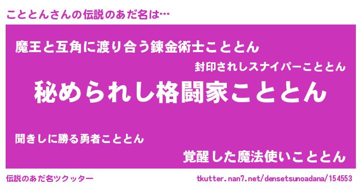 | 意味不明あだ名 | 『こととんフォーエバー』『自称こととん』 |