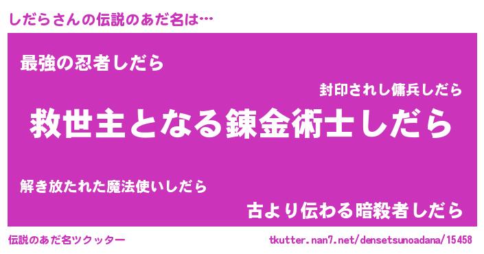 | ヒーロー風カッコイイあだ名 | 『天空の使者しだら』『ネオシダラ』 |