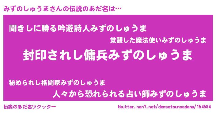 | 胡散臭い通販商品みたいなあだ名 | 『億万長者になれる水晶球…その名も「みずのしゅうま」』 |