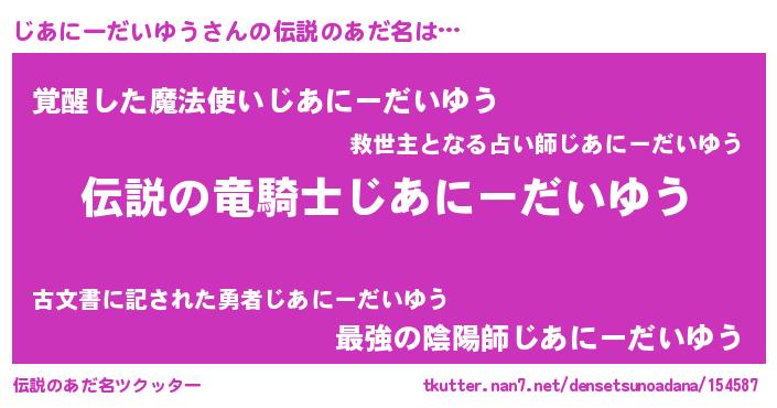 | 胡散臭い通販商品みたいなあだ名 | 『必ず成功するブレスレット…その名も「じあにーだいゆう」』 |