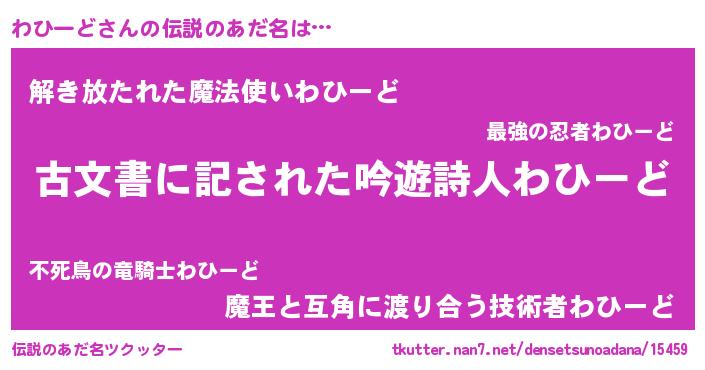 | ヘコむあだ名 | 『わひーど(笑)』『わひを』 |