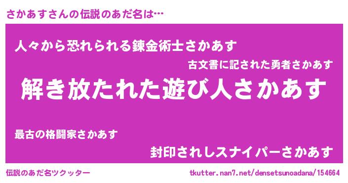 | 意味不明あだ名 | 『住所不定無職さかあす(91歳)』 |