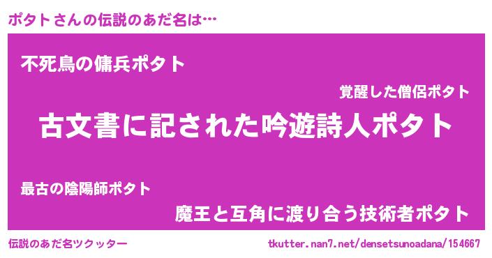 | ヘコむあだ名 | 『ポタト(笑)』『ポタにゅー』 |