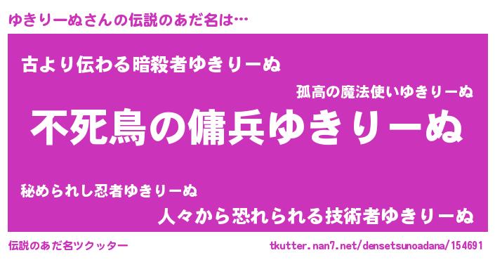 | ファンタジー風あだ名 | 『カークユキラー』『ユキフェル』 |