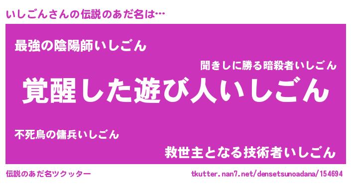| ヒーロー風カッコイイあだ名 | 『最強戦士イシゴン』『炎刃騎士イシ』 |