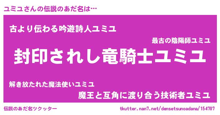 | ヒーロー風カッコイイあだ名 | 『スーパーユミユ』『サイバー戦士ユミユ』 |