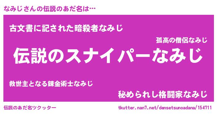 | 男性向けラノベタイトル風あだ名 | 『緋弾のナミジ』『魔法科高校のなみじ』 |