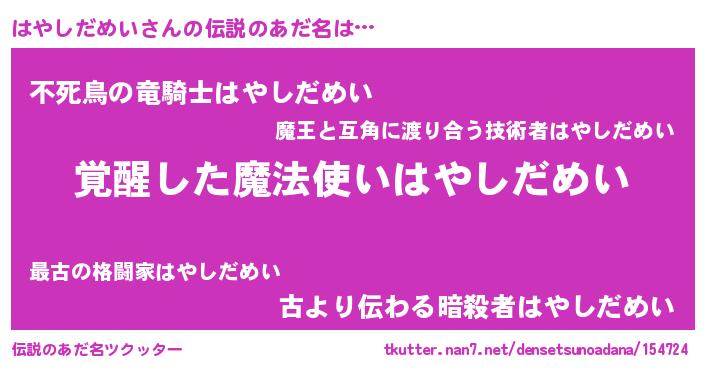 | ヒーロー風カッコイイあだ名 | 『天弓騎士ハヤ』『スーパーハヤシダメイ』 |