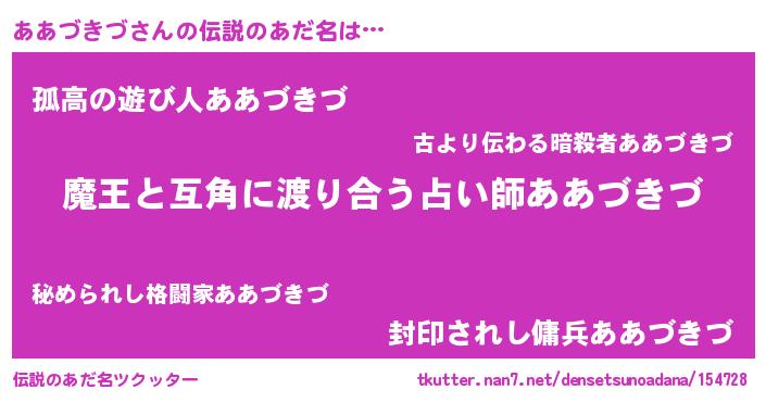 | 女子向けラノベタイトル風あだ名 | 『ああづきづ恋絵巻』 |