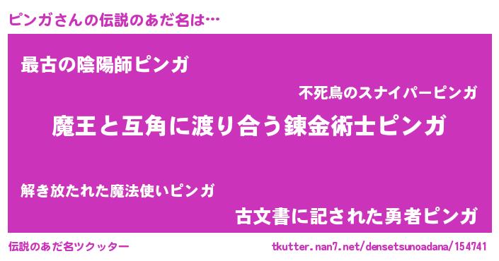 | ヒーロー風カッコイイあだ名 | 『愛の使者ピンガ』『ウルトラピンガマン』 |