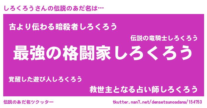 | 意味不明あだ名 | 『住所不定無職しろくろう(8歳)』 |