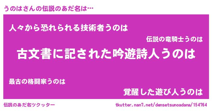 | ヒーロー風カッコイイあだ名 | 『ネオウノハ』『愛の使者うのは』 |