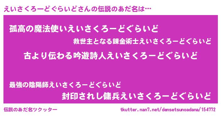 | 意味不明あだ名 | 『永久保存えいさくろーどぐらいど』 |