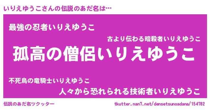 | 意味不明あだ名 | 『住所不定無職いりえゆうこ(68歳)』 |