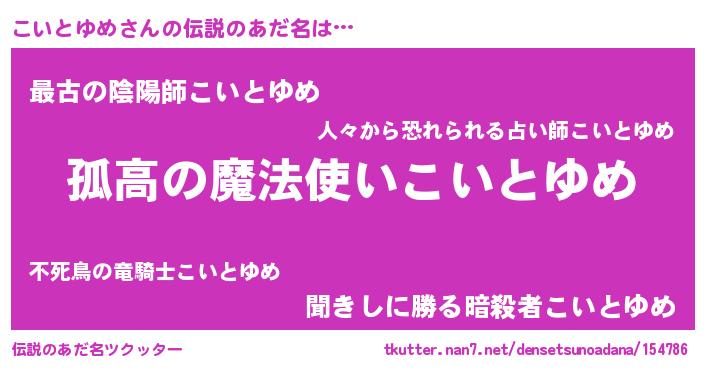 | 意味不明あだ名 | 『住所不定無職こいとゆめ(13歳)』 |