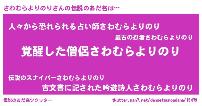| 男性向けラノベタイトル風あだ名 | 『この素晴らしい世界にさわむらよりのりを!』 |