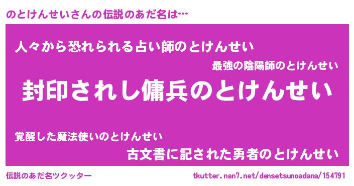 | 意味不明あだ名 | 『自称のとけんせい』 |