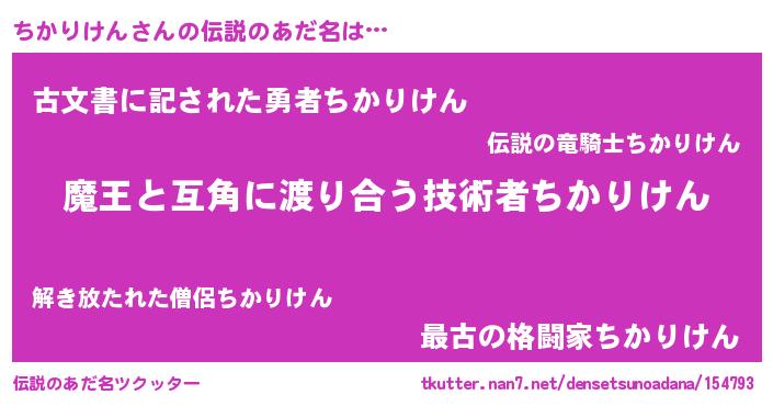 | ヒーロー風カッコイイあだ名 | 『慈愛の使者ちかりけん』『仮面チカダー』 |