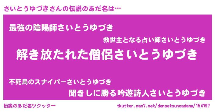 | ヒーロー風カッコイイあだ名 | 『幻影騎士サイ』『ネオサイトウユヅキ』 |