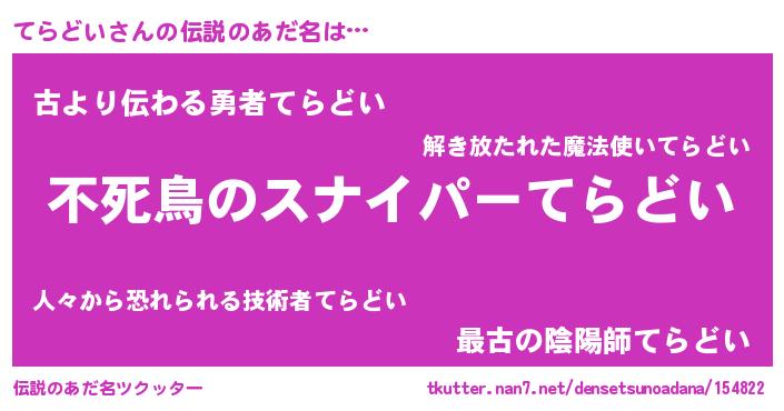 | 胡散臭い通販商品みたいなあだ名 | 『モテモテ間違いなし霊験あらたかなお札…その名も「てらどい」』 |