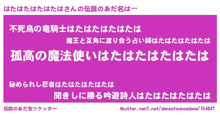 | 男性向けラノベタイトル風あだ名 | 『ダンジョンにはたはたはたはたはを求めるのは間違っているだろうか』 |