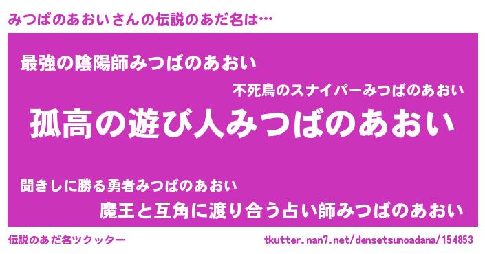 | 男性向けラノベタイトル風あだ名 | 『ダンジョンにみつばのあおいを求めるのは間違っているだろうか』 |
