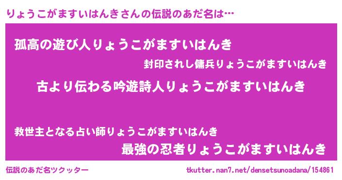 | 欧米人風あだ名 | 『ダルビッシュりょうこがますいはんき』 |