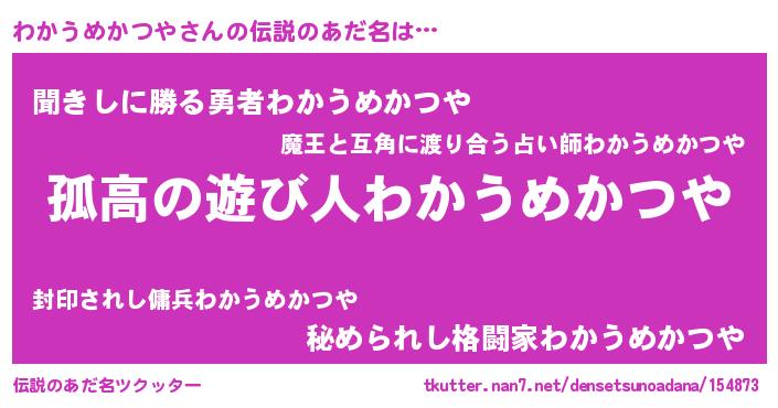 | 胡散臭い通販商品みたいなあだ名 | 『信頼と実績のペンダント…その名も「わかうめかつや」』 |