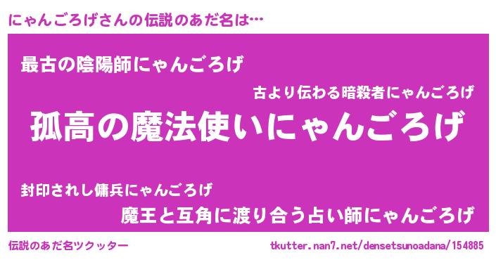 | 胡散臭い通販商品みたいなあだ名 | 『信頼と実績のサプリメント…その名も「にゃんごろげ」』 |