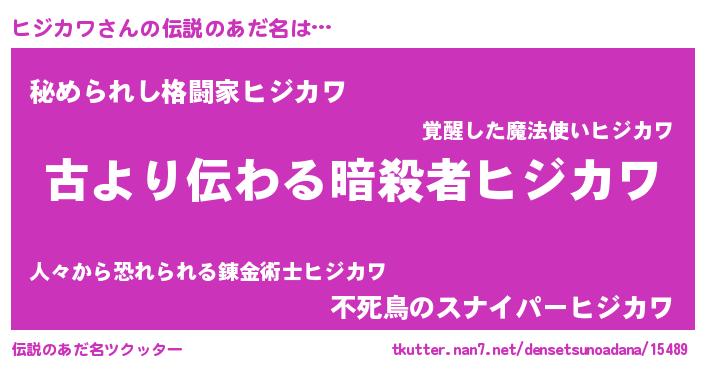| 男性向けラノベタイトル風あだ名 | 『ヒジカワという概念が存在しない退屈な世界 』 |