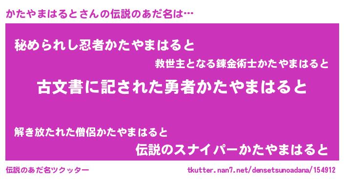 | ヒーロー風カッコイイあだ名 | 『仮面カタダー』『ネオカタヤマハルト』 |