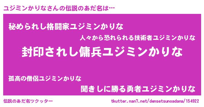 | 男性向けラノベタイトル風あだ名 | 『ユジミンカリナアートオンライン』 |