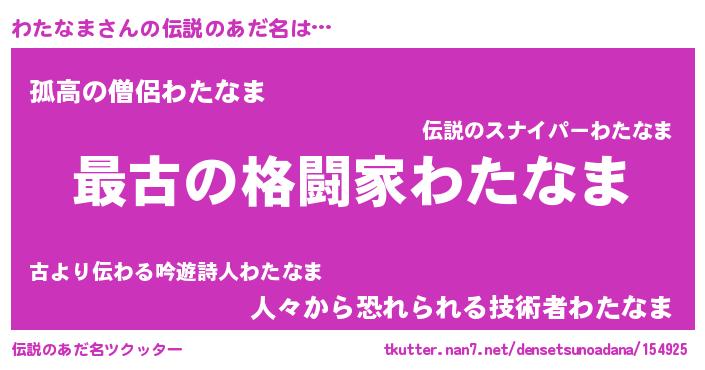 | ヒーロー風カッコイイあだ名 | 『仮面ワタダー』『超時空戦士ワタナマ』 |