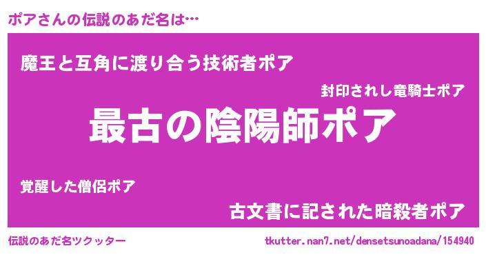 | 男性向けラノベタイトル風あだ名 | 『やはりポアの青春ラブコメはまちがっている 』 |