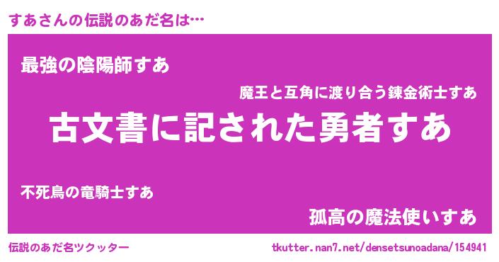 | 男性向けラノベタイトル風あだ名 | 『この素晴らしい世界にすあを!』 |