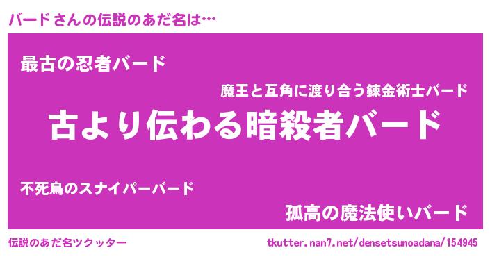 | 意味不明あだ名 | 『自称バード』『永久保存バード』 |
