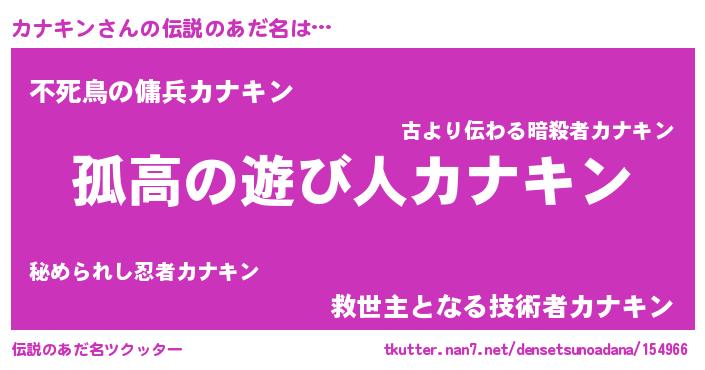 | 胡散臭い通販商品みたいなあだ名 | 『信頼と実績のペンダント…その名も「カナキン」』 |
