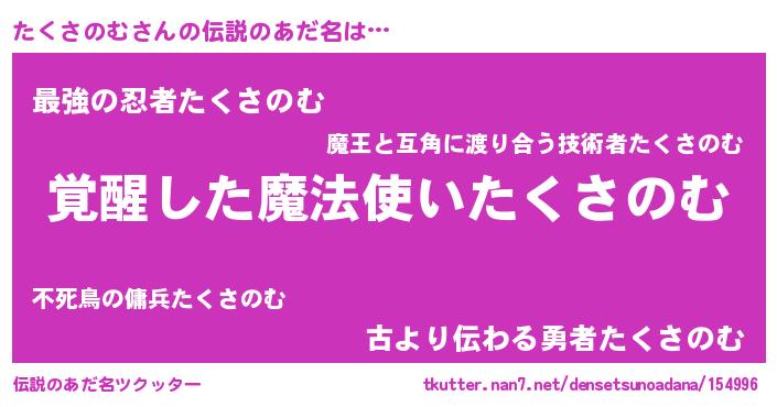 | ヒーロー風カッコイイあだ名 | 『天弓騎士タク』『ネオタクサノム』 |