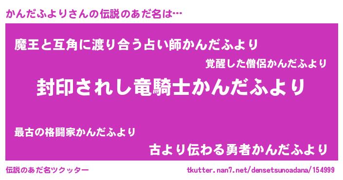 | 男性向けラノベタイトル風あだ名 | 『かんだふよりに滅ぼされるだけの簡単なお仕事です』 |