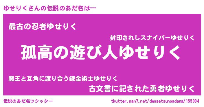 | 女子向けラノベタイトル風あだ名 | 『ゆせりくは平凡を望む』 |