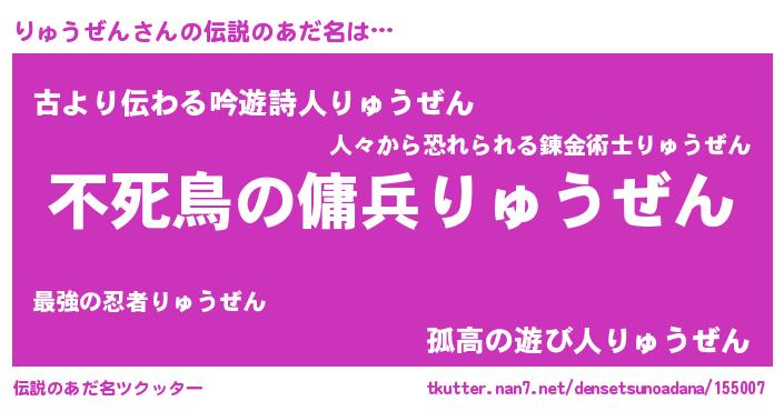 | 意味不明あだ名 | 『ペロリンりゅうぜん』『自称りゅうぜん』 |
