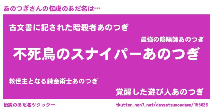 | 胡散臭い通販商品みたいなあだ名 | 『モテモテ間違いなし霊験あらたかなお札…その名も「あのつぎ」』 |